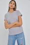 A ribbed colorblock midi dress. Features a rounded neckline and an exposed middle seam.