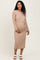 Camel Ribbed Ruffle Accent Long Sleeve Maternity Midi Dress