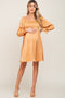 Camel Satin Smocked Square Neck Dress