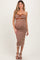 Camel Striped Knit Strapless Maternity Midi Dress