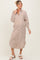 Embrace comfort and style with our Camel Textured Stripe Button Down Maternity Shirt Dress. Crafted from a soft, breathable fabric, this dress features classic vertical stripes in camel tones that flatter your maternity silhouette. The button-down front and collar add a timeless touch, while side slits enhance mobility and ease. Designed with long sleeves and a relaxed fit, it grows with you through every trimester. Perfect for casual outings or dressing up with your favorite accessories. Pair it with sandals or sneakers for an effortlessly chic maternity look. Your go-to dress for comfort and elegance throughout pregnancy.