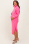 Camel Turtleneck Chunky Knit Maternity Midi Sweater Dress