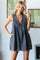 Charcoal Deep V-Neck Pleated Front Tie Sleeveless Romper