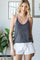 Charcoal Floral Ribbed Contrast Trim Tank Top