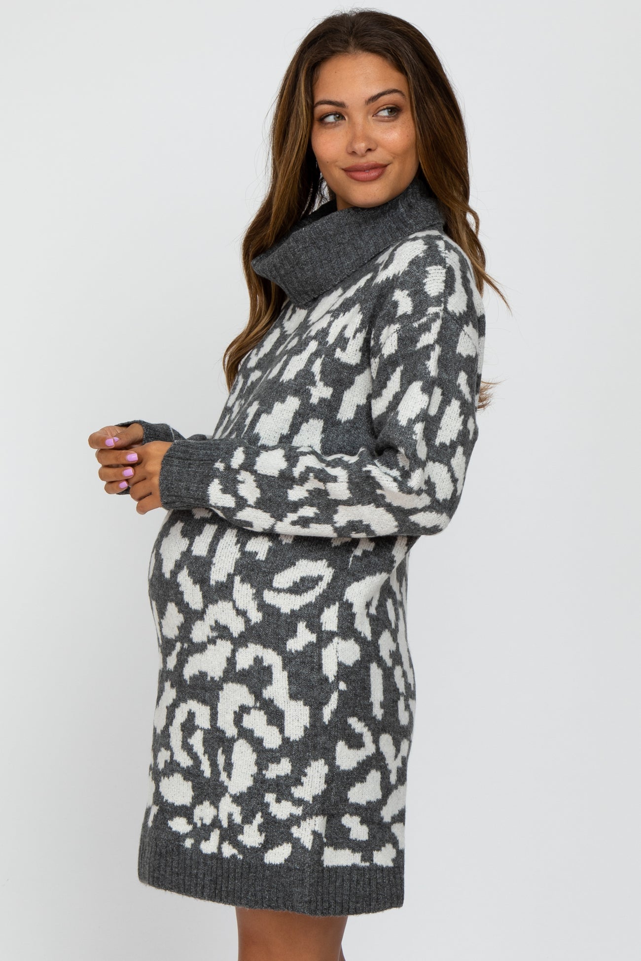 Charcoal Leopard Turtleneck Maternity Sweater Dress