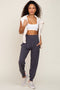 A pair of soft maternity joggers with a wide waistband and side pockets.