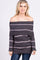 A striped knit sweater featuring a foldover off shoulder neckline and long cuffed sleeves.