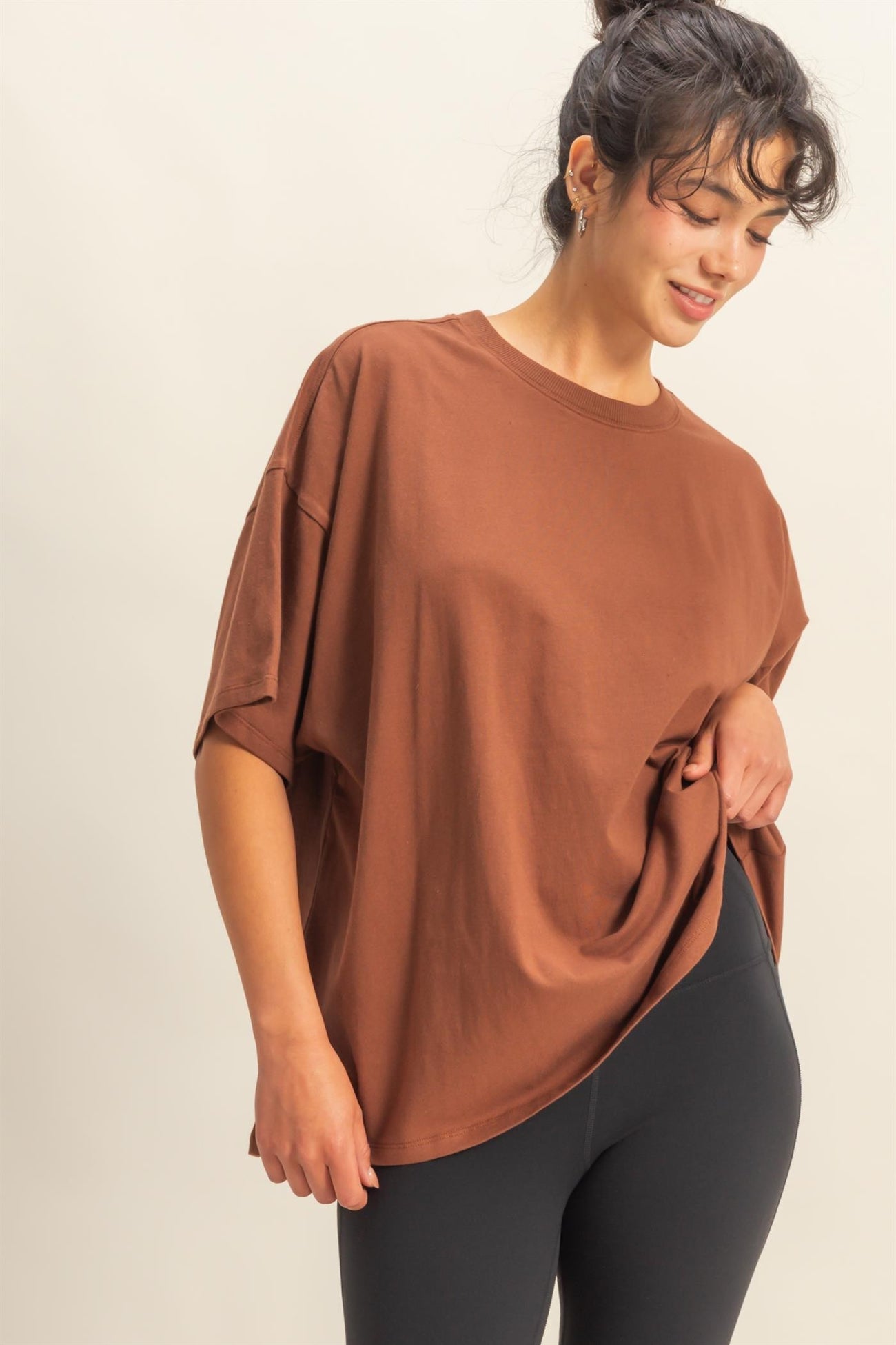 Chestnut Crew Neck Short Sleeve Oversized T-Shirt
