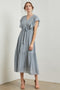 Coral Eyelet Scalloped V-Neck Short Puff Sleeve Midi Dress