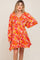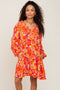 Coral Floral Button Front Ruffle Accent Maternity Dress
