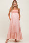 Coral Floral V-Neck Flowy Tiered Maternity Maxi Dress