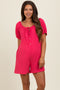 A solid hue dress featuring, a rounded neckline, short sleeves, side pockets and fringe detailing.