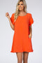 A solid hue maternity dress featuring, a rounded neckline, short sleeves, side pockets and fringe detailing.