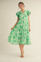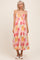 Coral Multi Floral Print Ruched Shoulder Tie Maternity Midi Dress