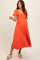 Coral Puff Sleeve Linen Maternity Midi Dress