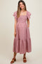 Coral Ruffle Sleeve Tiered Maternity Maxi Dress
