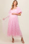 Cream Balloon Sleeve Embroidery Mesh Maternity Midi Dress