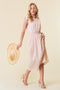 A chevron crochet maternity midi dress featuring a v-neckline, adjustable shoulder ties and double lining.