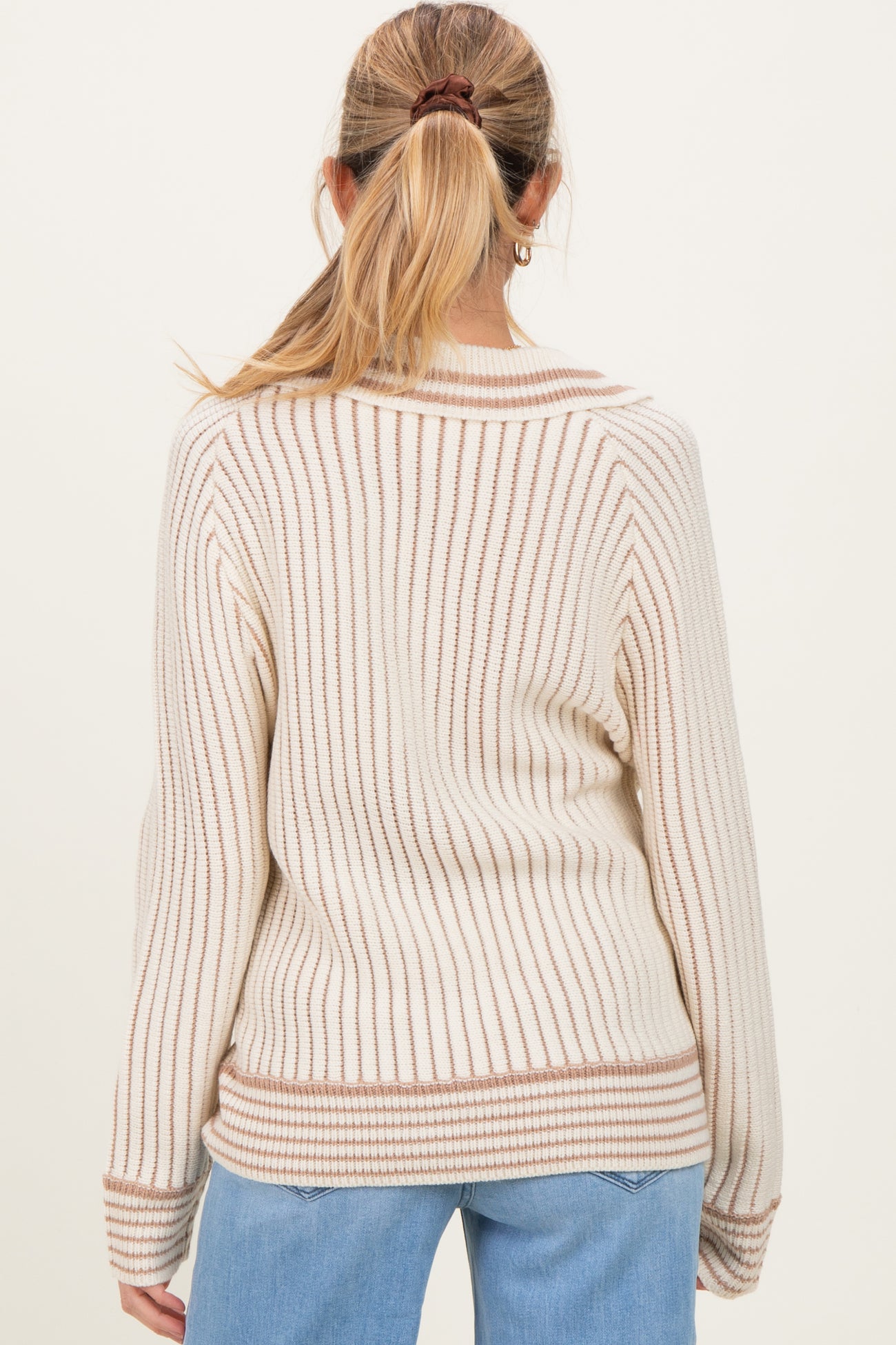 Cream Chunky Rib Striped Detail Polo Maternity Sweater