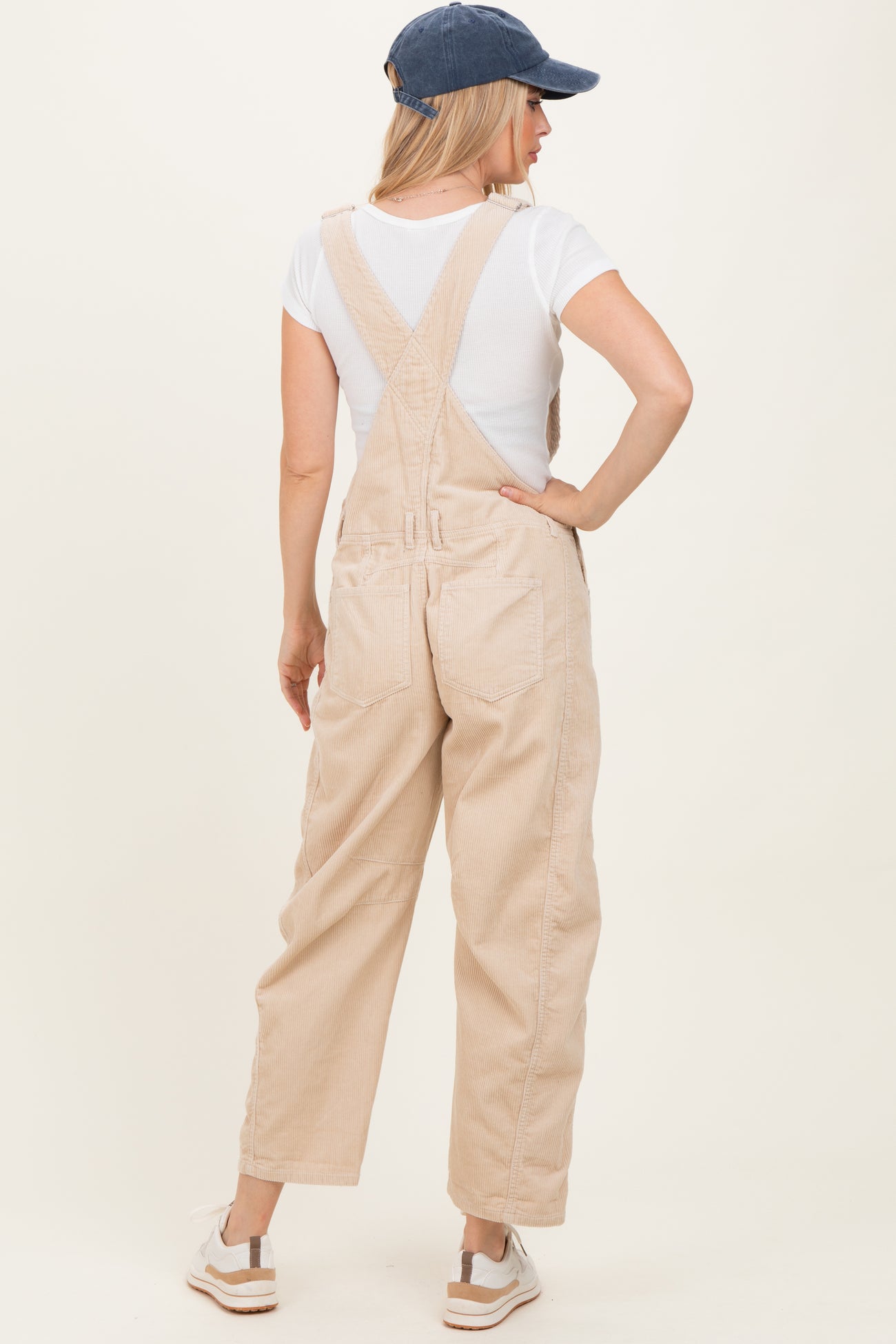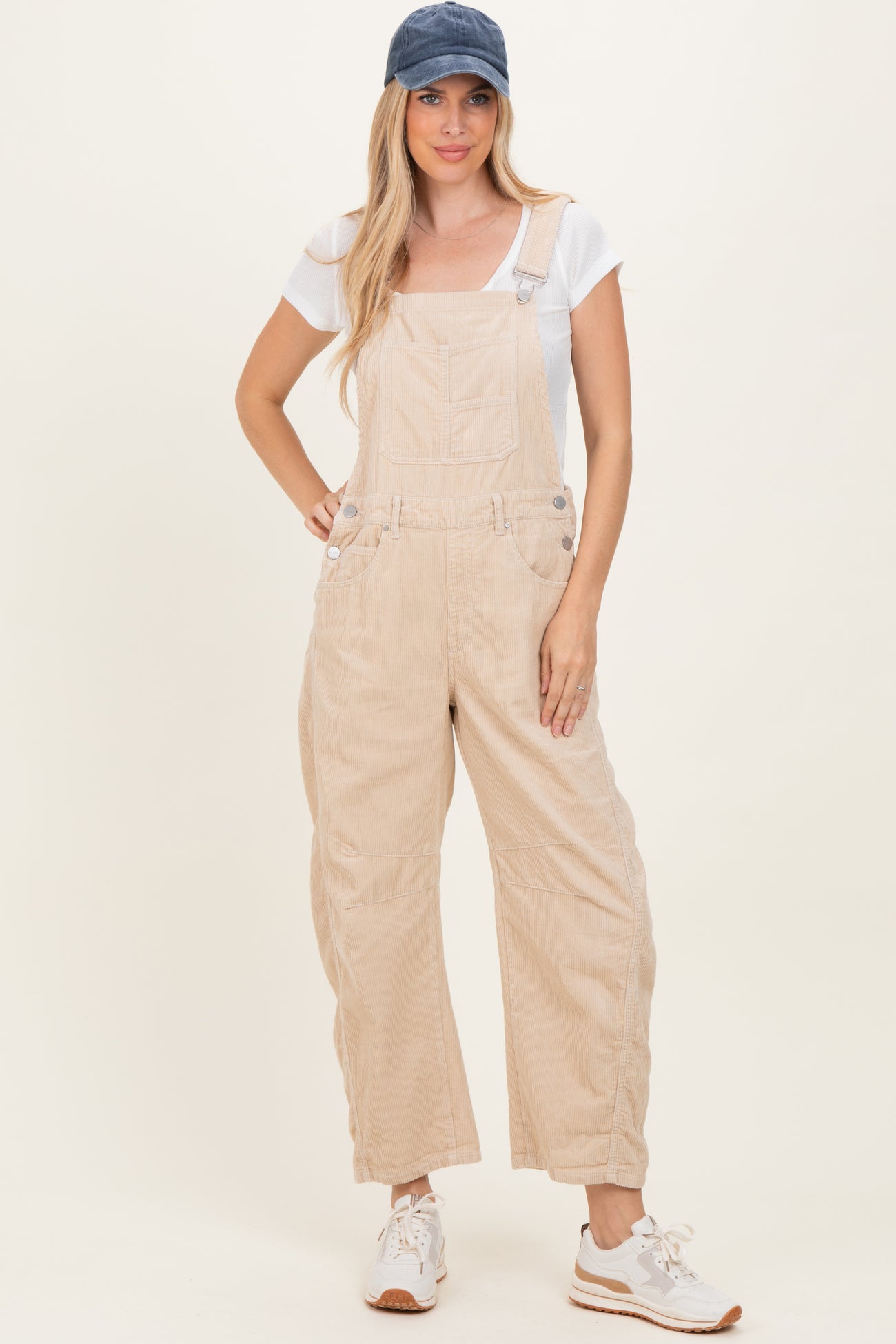 Cream Corduroy Rolled Cuff Barrel Leg Overalls