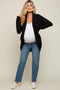 A corduroy, sherpa lined shacket featuring long sleeves, a snap button down front, two front pockets with a snap button closure and a round hem.