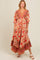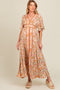 Cream Floral Border Print V-Neck Tiered Midi Dress