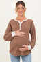 Cream Floral Neck Tie Long Sleeve Maternity Midi Dress