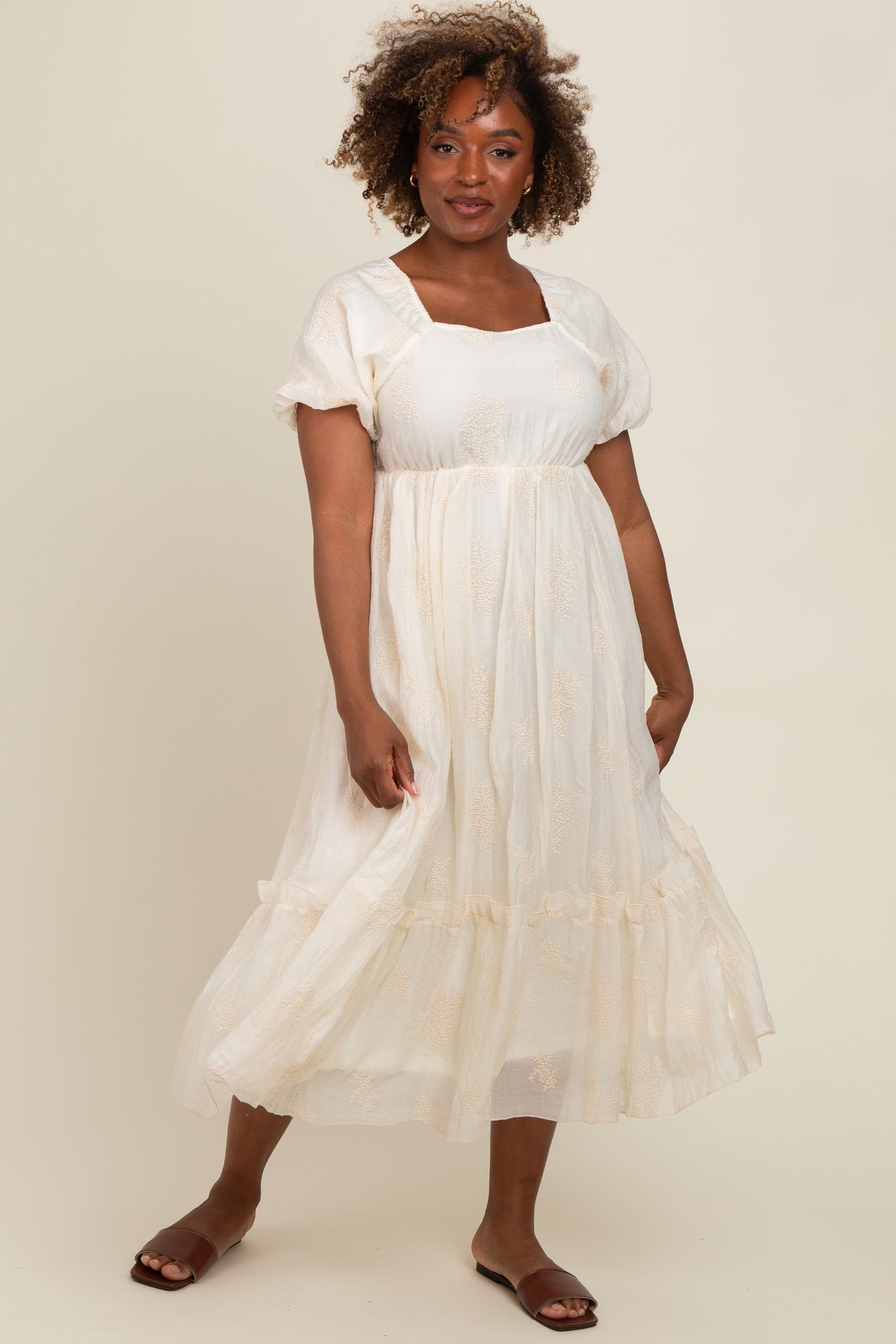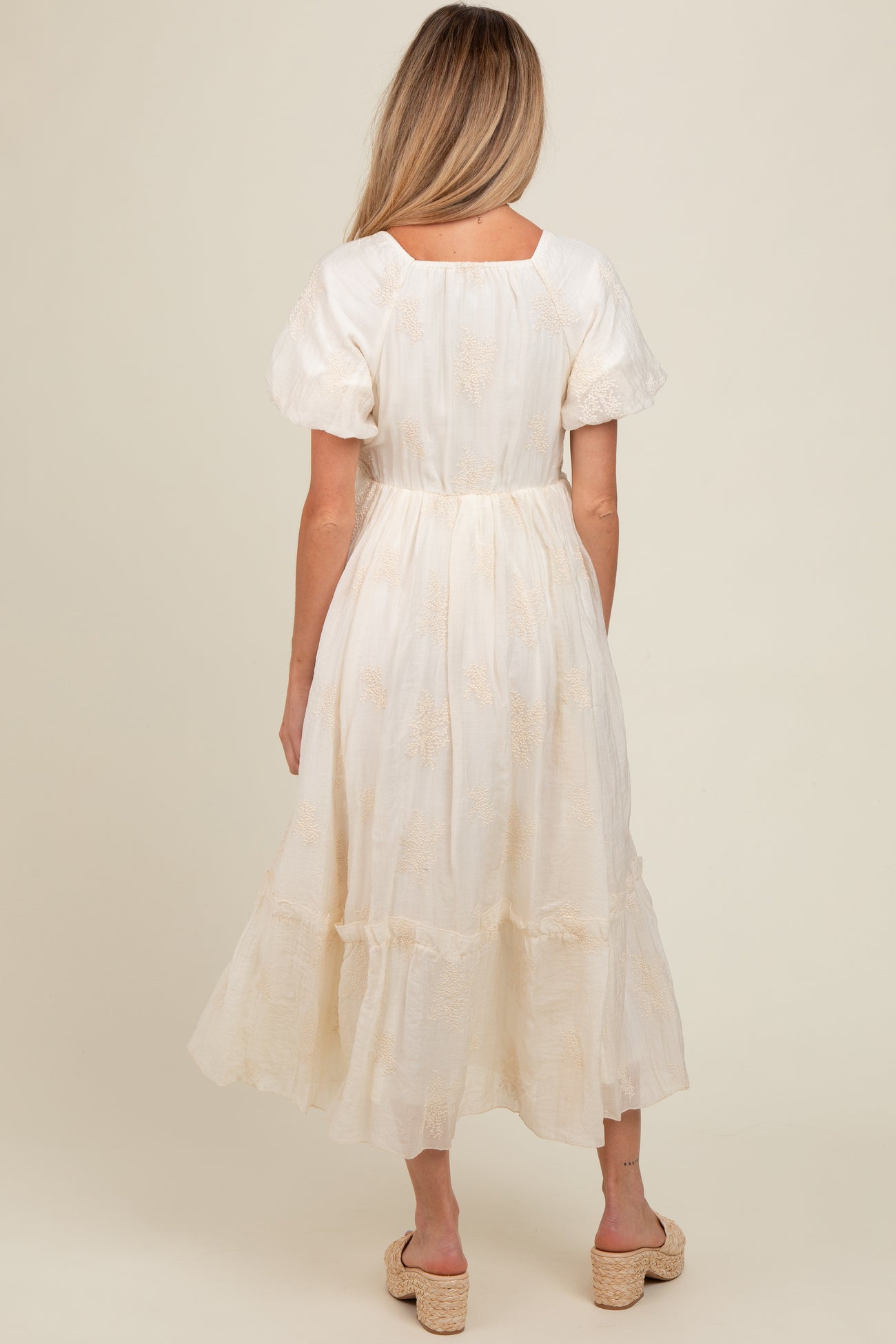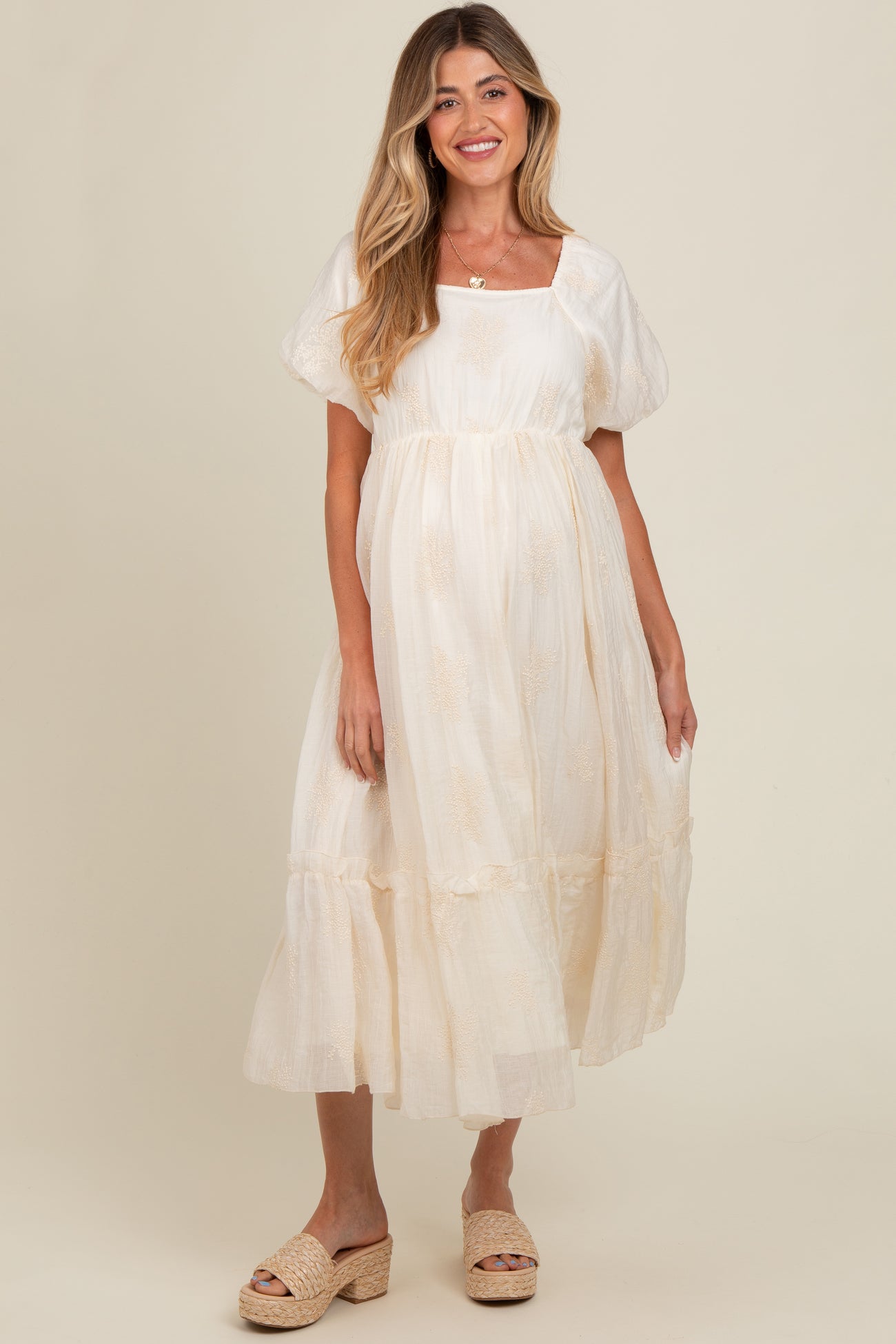 Cream Floral Print Ruffle Hem Maternity Midi Dress