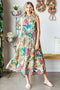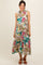 Cream Floral Ruffle Mock Neck Tiered Maternity Midi Dress