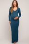 A floral satin maternity plus size maxi with a squared neckline, short puff sleeves, a smocked back, and side pockets.