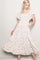 Cream Floral Smocked Lace Trim Flutter Sleeve Midi Dress