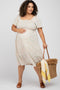 A floral print plus size midi dress featuring a square neckline, a smocked elastic top, short flutter sleeves and double lined.