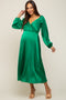 A solid knit fitted midi dress featuring a fold-over turtleneck.