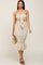Cream Pink Rose Floral Knot Front Smocked Midi Dress