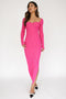 A ribbed maternity maxi dress with a sweetheart neckline, long sleeves, a waist tie, and a side slit.