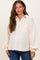 Stay cozy and stylish with our Cream Solid Ribbed Long Sleeve Pocketed Collared V-Neck Maternity Top. Made from soft, breathable ribbed fabric, this top offers gentle stretch to comfortably accommodate your growing bump. The relaxed fit features a classic collared V-neck for a flattering neckline and a convenient chest pocket for a touch of casual flair. Long balloon sleeves with elastic cuffs add a trendy silhouette while keeping you warm. Perfect for everyday wear or layering, this versatile cream top pairs effortlessly with jeans or leggings for a chic maternity look. Embrace comfort and style all season long!