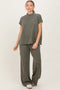 Cream Textured Rib Mock Neck Short Sleeve Pant Set
