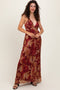 Dark Brown Floral Deep V-Neck Back Cutout Maxi Dress
