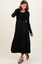 Dark Brown Floral Smocked Sleeve Tie Midi Dress