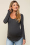 A basic maternity top with long sleeves and a scoop neckline.