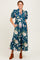 Deep Teal Floral Puff Sleeve Button Down Midi Dress