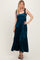 Deep Teal Velvet Smocked Satin Shoulder Tie Maxi Dress