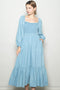 Step into effortless style with our Denim Washed Sweetheart Maxi Dress. Featuring a flattering sweetheart neckline and ruched bodice, this dress accentuates your silhouette while offering comfort with its soft, washed denim fabric. The long puff sleeves with elastic cuffs add a romantic touch, combining vintage charm with modern ease. Its flowing maxi length and tiered hem create graceful movement, perfect for both casual days and special occasions. Pair with ankle boots or sandals for a versatile look that’s timeless and chic. Embrace boho vibes with a contemporary denim twist in this must-have maxi dress.