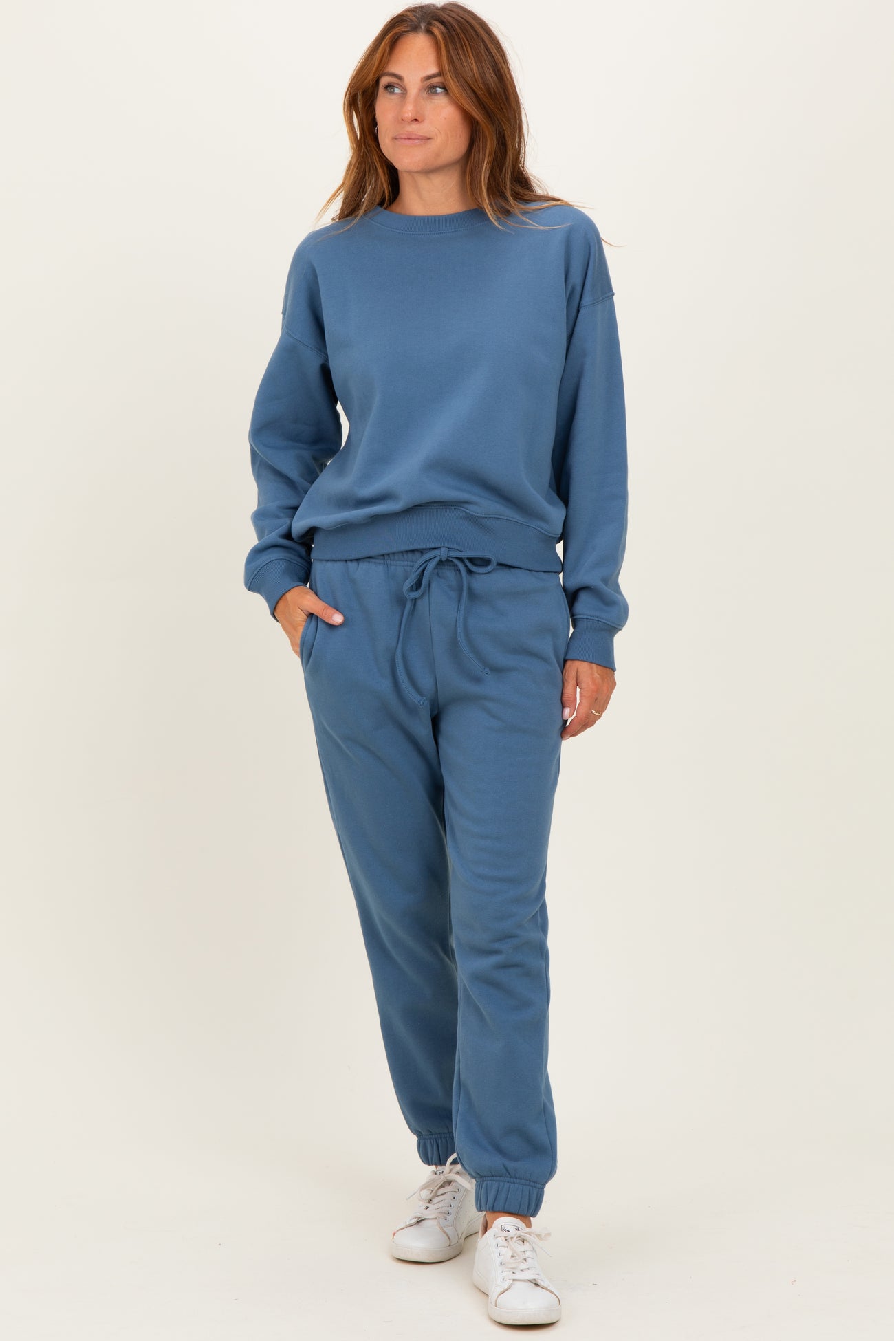 Dusty Blue Fleece Long Sleeve Maternity Pullover & Jogger Set