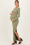 Dusty Blue Fleece Snap Button Maternity Hoodie
