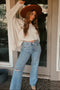 An ultra soft knit maternity sweater featuring a boat neckline, long bubble sleeves, and exposed seam detailing.