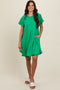 Forest Green Drop Shoulder Side Pocket 3/4 Sleeve Cardigan