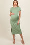 Forest Green Floral Knot Front Short Sleeve Asymmetrical Hem Maternity Maxi Dress