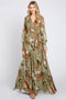 Forest Green Floral Ruffle Neck Tiered Midi Dress