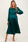 Forest Green Pleated Satin Smocked Waist Maternity Midi Dress